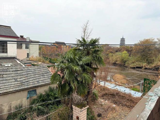 大多数房屋的门窗已被拆除,只剩下空旷的框架与满地狼藉,走进一户住宅登上二楼,大明寺的栖灵塔赫然映入眼帘,静静地矗立在不远处。